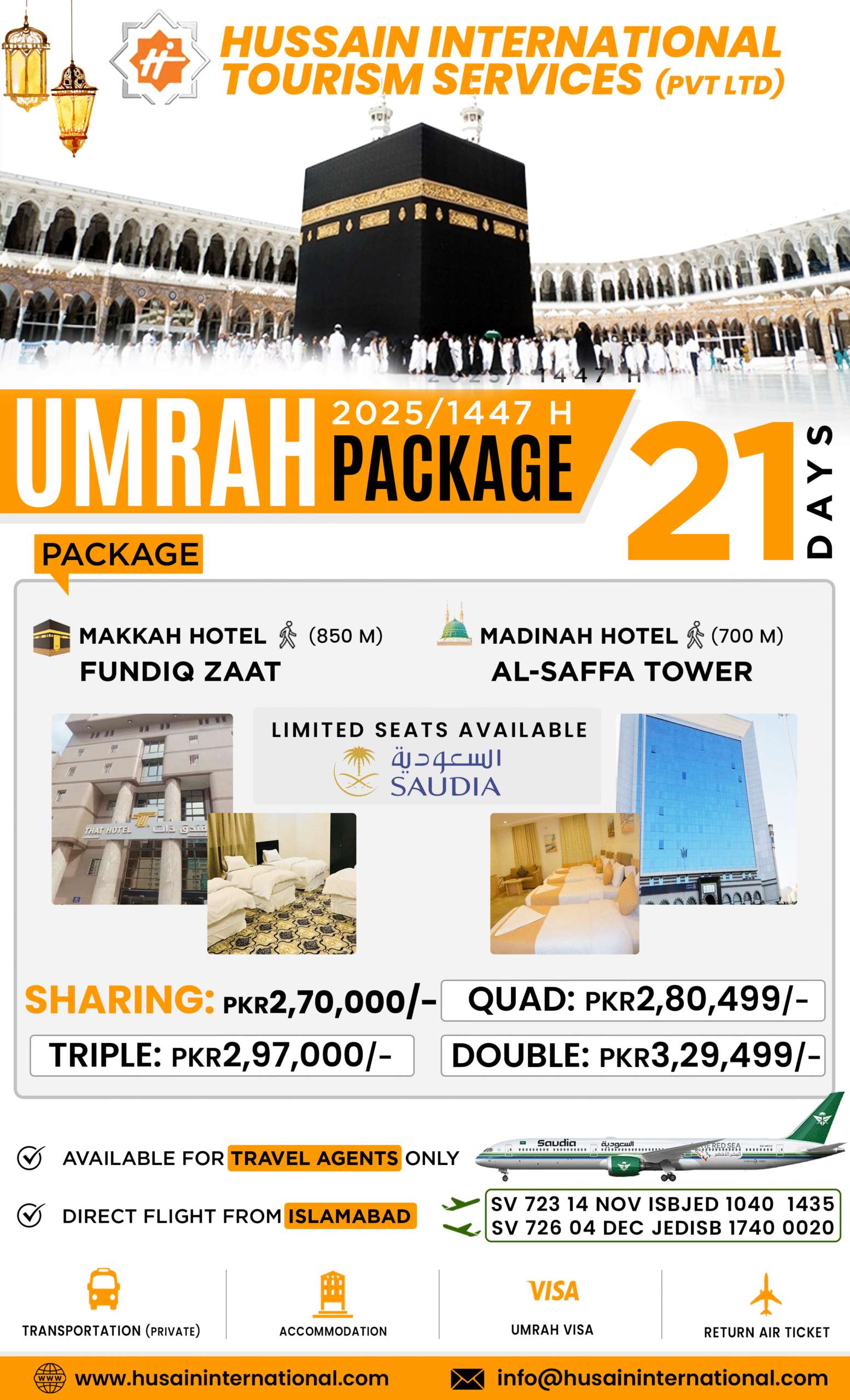 21 Days of Spiritual Enrichment** – Ample time to perform Umrah rituals with ease, visit holy sites, and immerse yourself in worship.